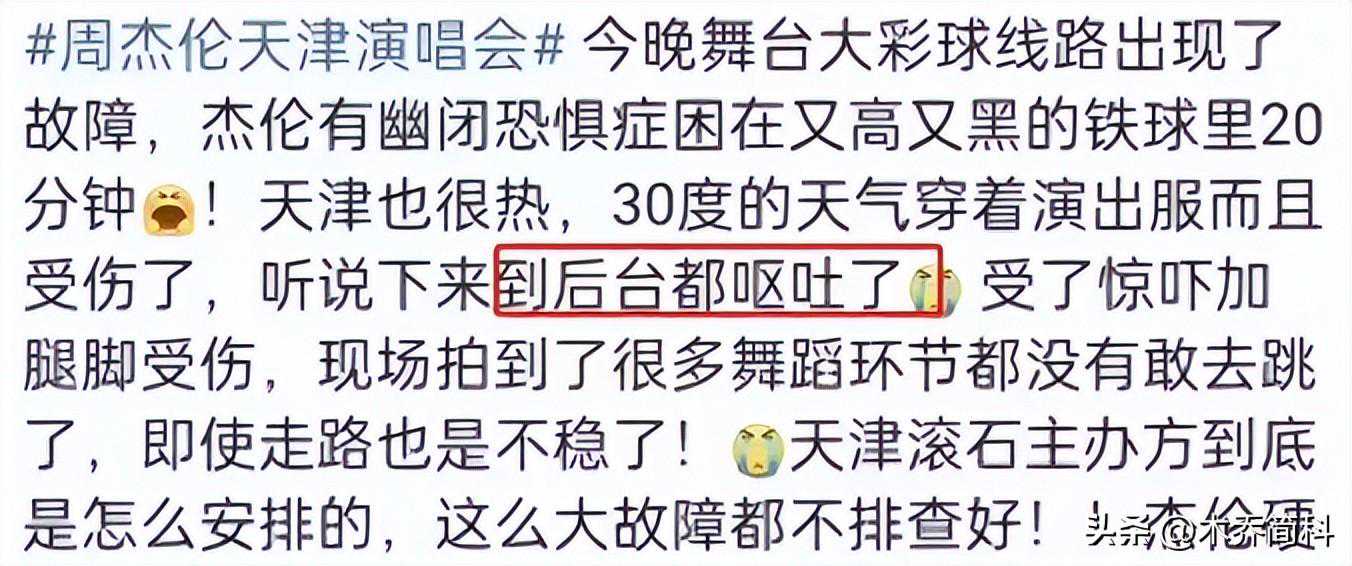 根据粉丝透露,周杰伦在被救出来之后不仅腿部受伤了,而且在后台一阵呕吐!