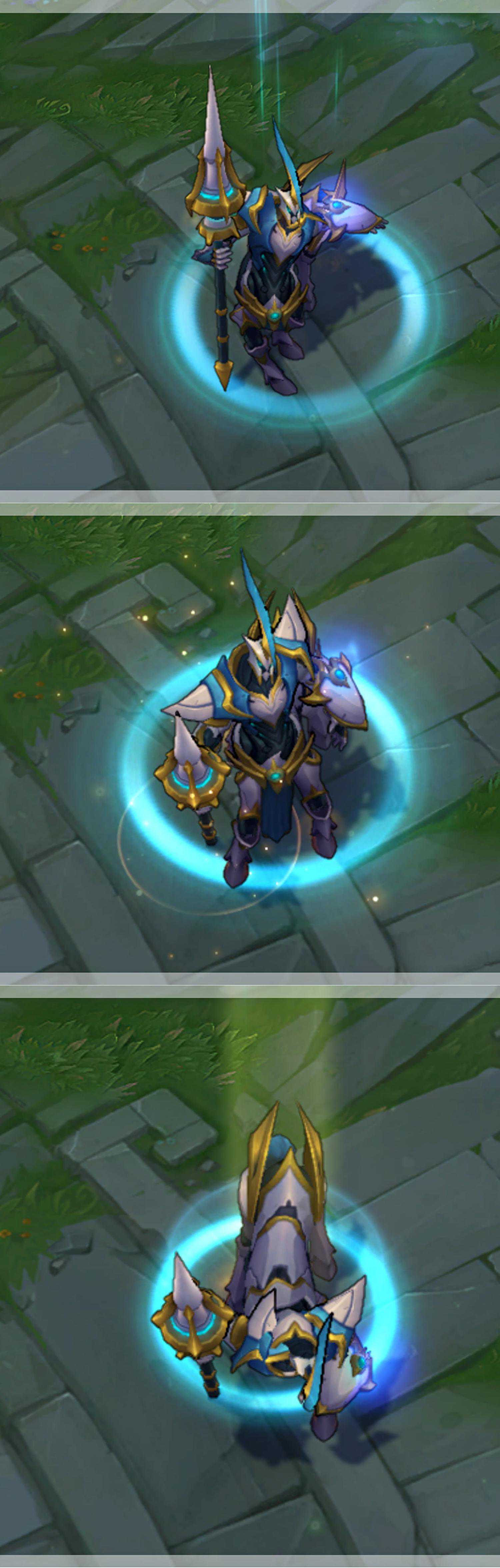 制作黑暗枪骑皮肤时的探索,保留并应用到制作光明枪骑皮肤的制作上。尽管只是一些原始的技术优势,加上努力和创意,我们发现可以在这两种皮肤使用相同的骨架和动画。这腾出了一些额外的时间,制作全新的角色模型,视觉和音频特效,以及崭新的回城动画。让两款款皮肤拥有独特的感觉,即使他们共享同一-主题(以及隐性特征)