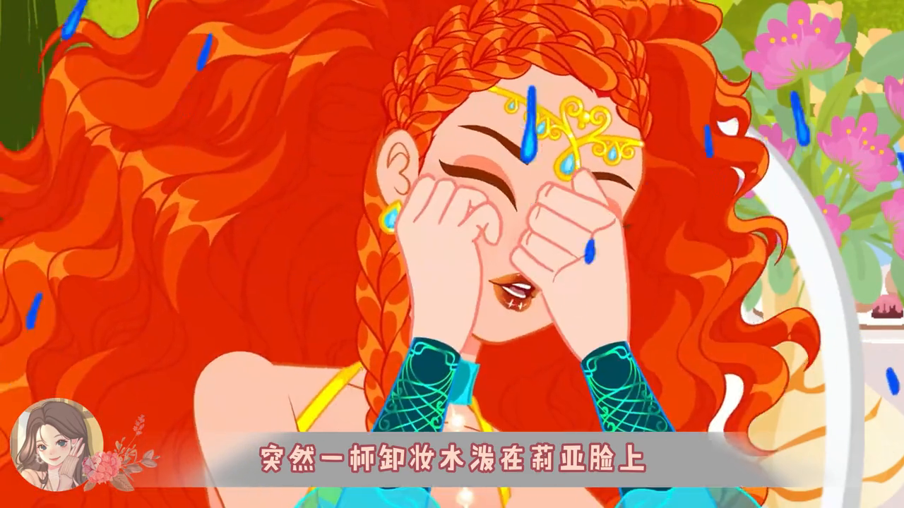 第二天,莉亚一出场就惊艳了所有人,在宴会上,她甚至引起了王子的注意。然而费格斯王子一点也不关心她,突然一杯卸妆水泼在莉亚脸上,她的妆容完全被洗掉了。那杯水是来自一个邪恶的公主,她很嫉妒莉亚美丽的样子。莉亚突然变得很尴尬,她哭着跑了出去。