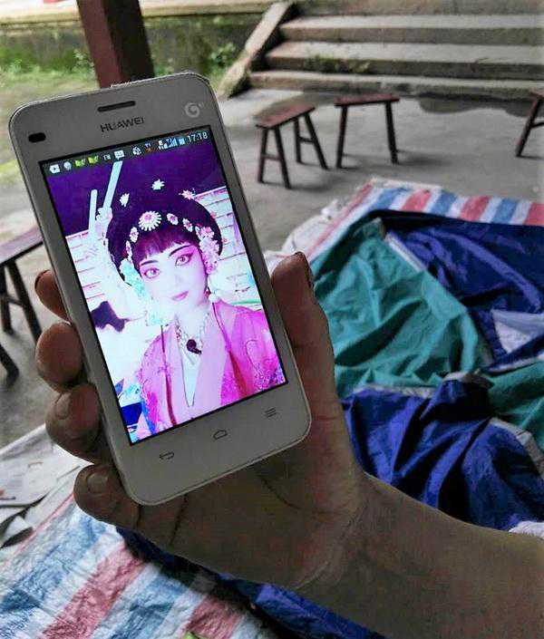 新建镇婺剧团解散后,徐珍英的一批姐妹脱离了婺剧行当,结婚生子,下海经商,环顾一周,只有徐珍英在这个圈子坚持了39年。离开民间婺剧团的自然免去了常年奔波迁徙之苦,问她后悔过吗,徐珍英摇头,“一个人闷在家里会觉得很烦,事情多,出来唱戏,开开心心的,什么事情都忘记了。”她打开手机相册,翻出一张演花旦的扮相。