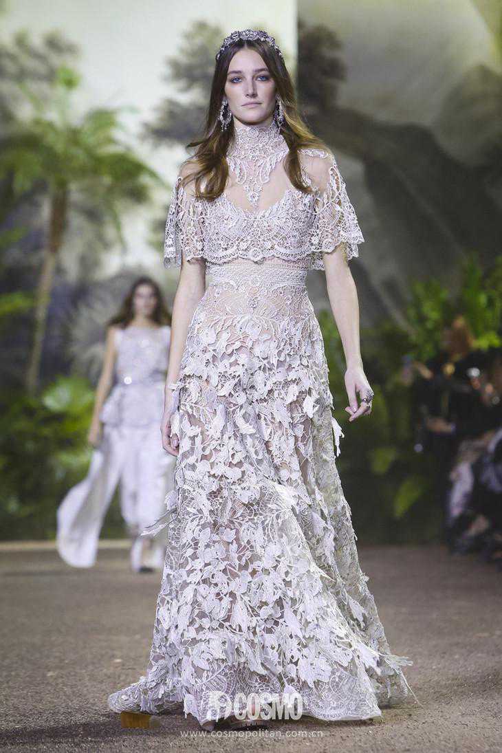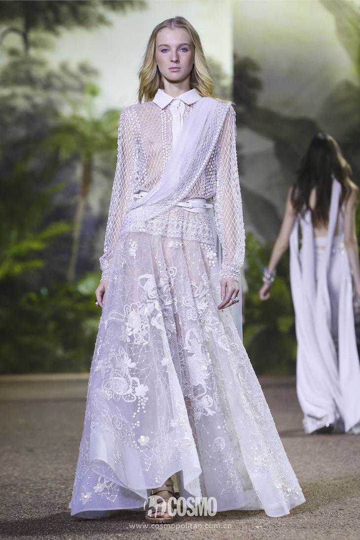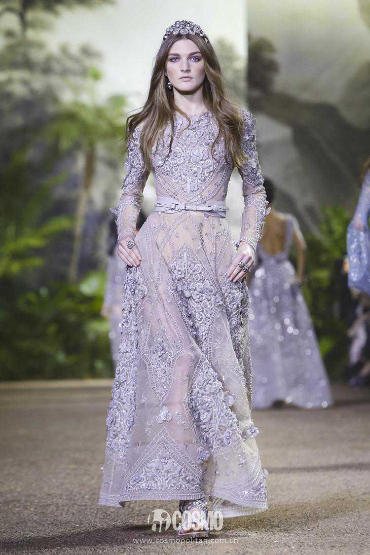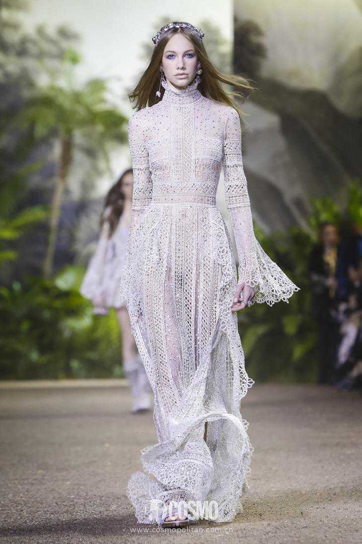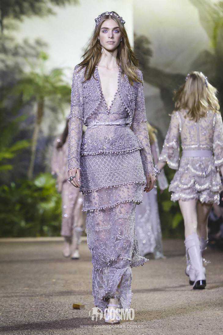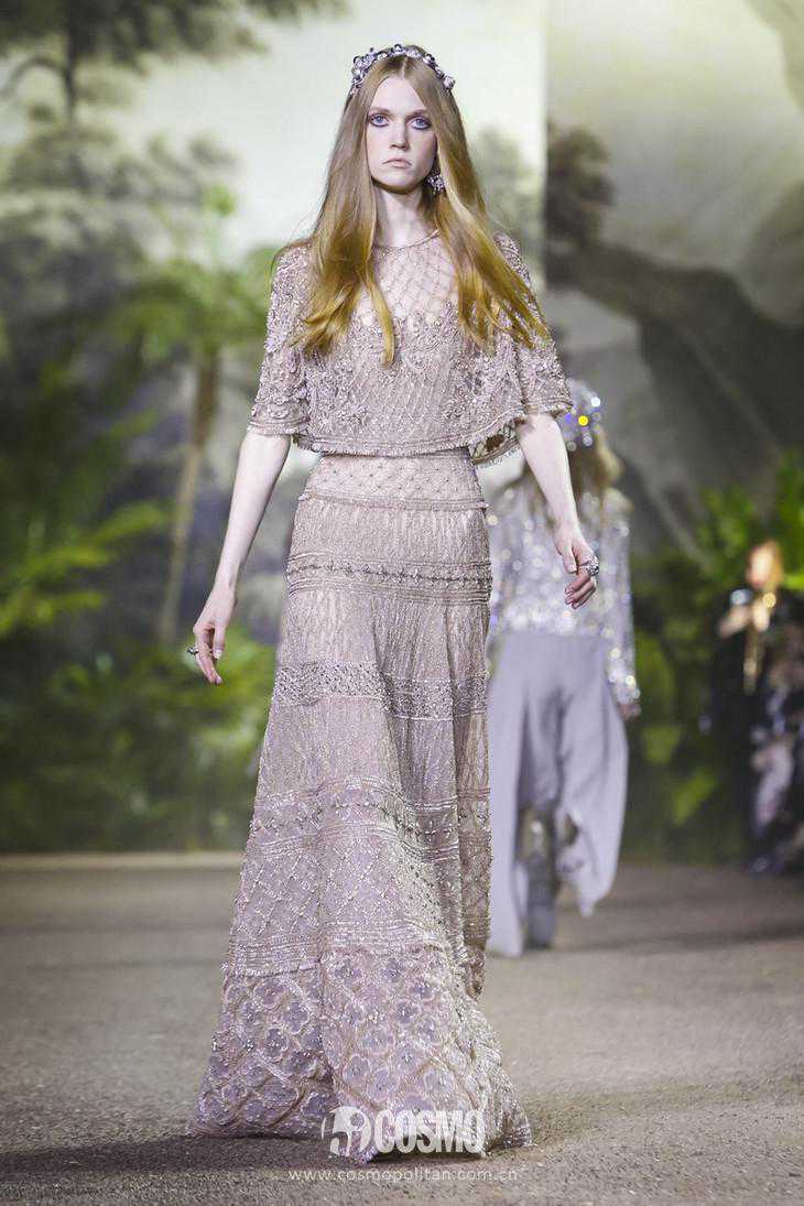 ElieSaab2016春夏高定依旧用蕾丝、刺绣、钉珠等材质,但依旧很美!依旧美得很雷同!