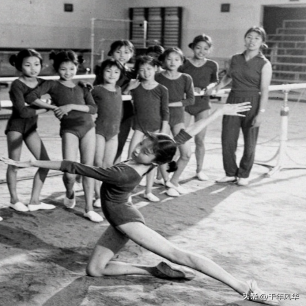 1972年,北京业余体操队的小学生们,正在老师的指导下进行练习。因为是业余体操队,她们的练习时间,大多都集中在放假的时候,这张照片就拍摄于暑假时。一位小女孩摆出了舒展的动作,身边的其他的小女孩和老师站在一起,观看着同学的表演。