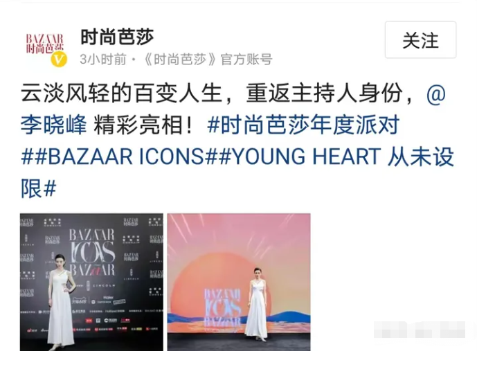 时尚芭莎是懂得搞事情的,她这次用的红毯主持人,是杨幂前夫刘恺威的现任:李晓峰。
