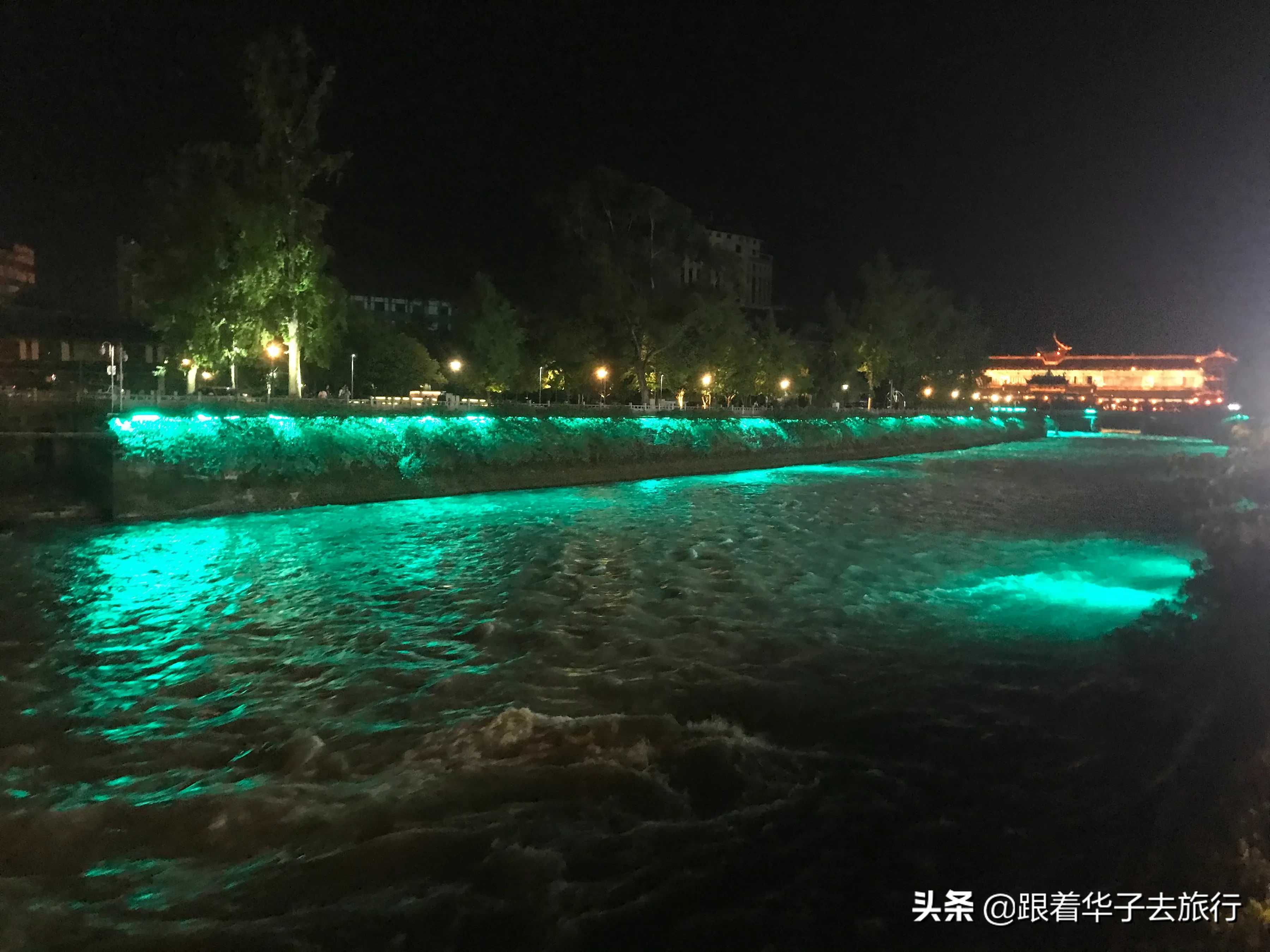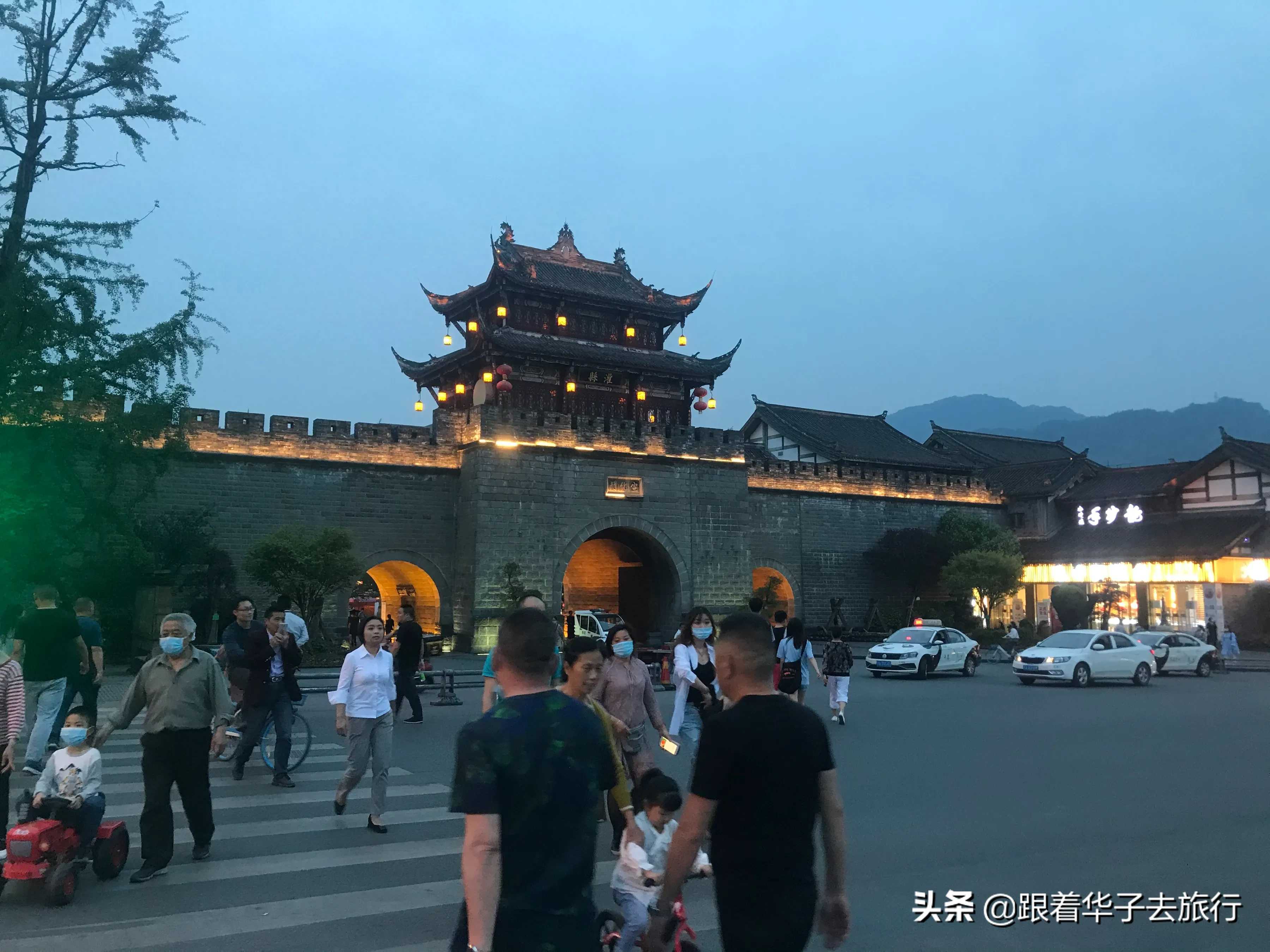 灌县古城的城门,到了晚上,古城里是最热闹的地方