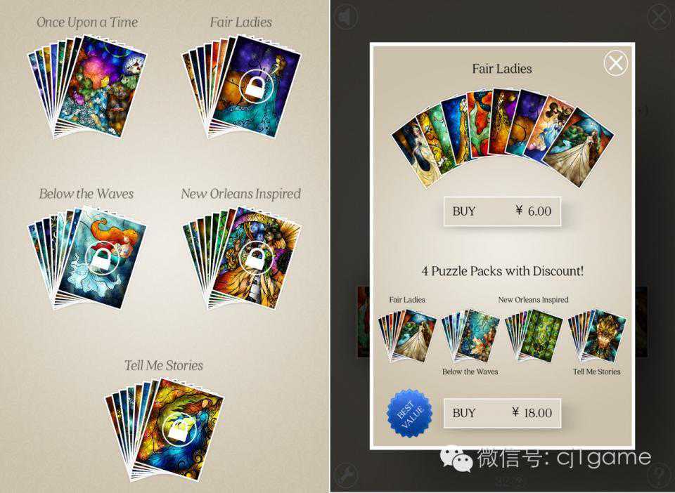 ▲游戏只免费开放了一个主题,但是一个主题9张拼图还有5种难度可供选择,还是能够玩挺久的,而且每一幅拼图作品都堪称艺术,值得收藏