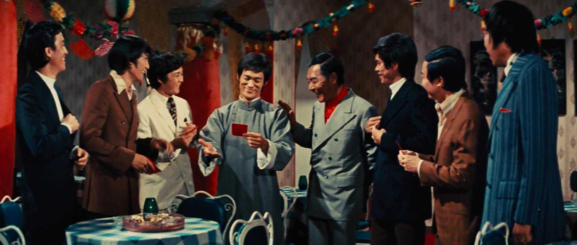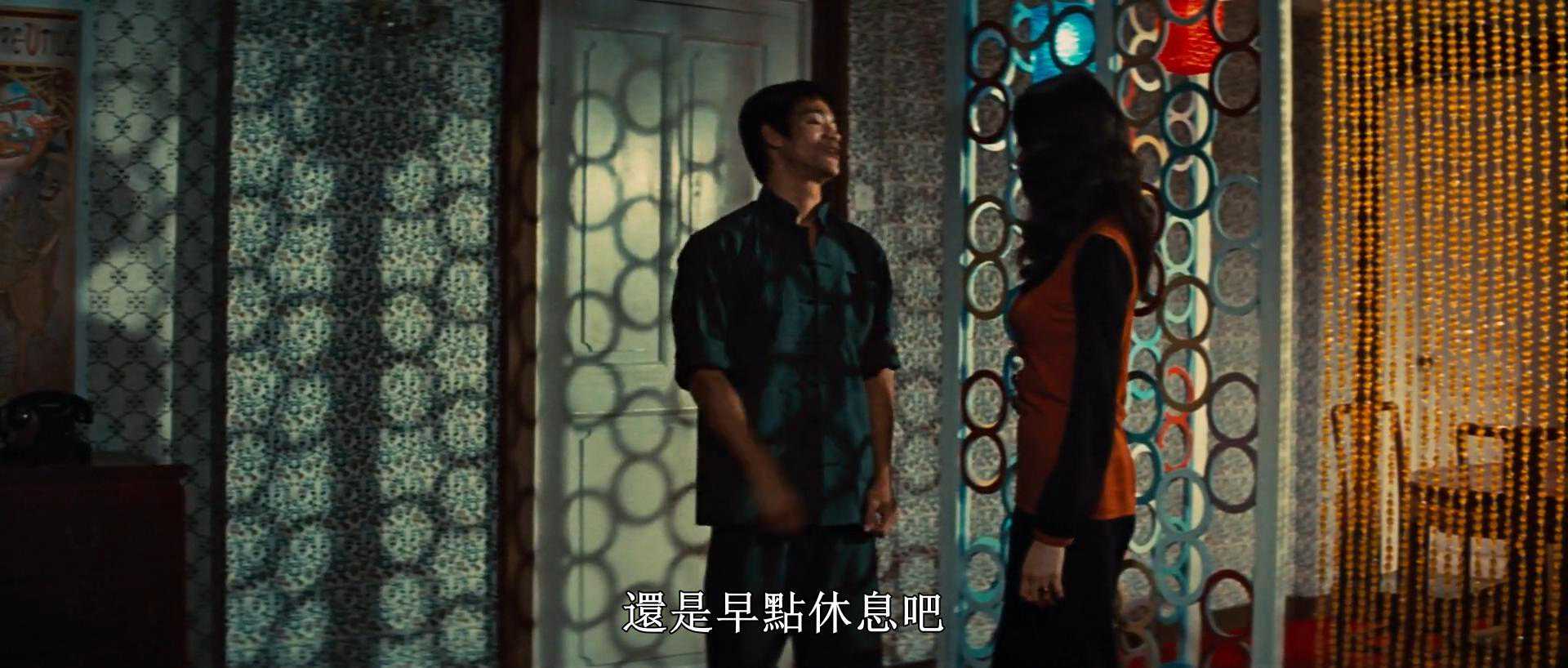 色彩鲜明,对比强烈,李的民族气节太耀眼了。李小龙的所有动作电影中,都对着装很重视,也不是什么高雅的唐装汉服,就是时下寻常的中华服饰。这份民族自信力,在朴素的着装中尤为凸显。