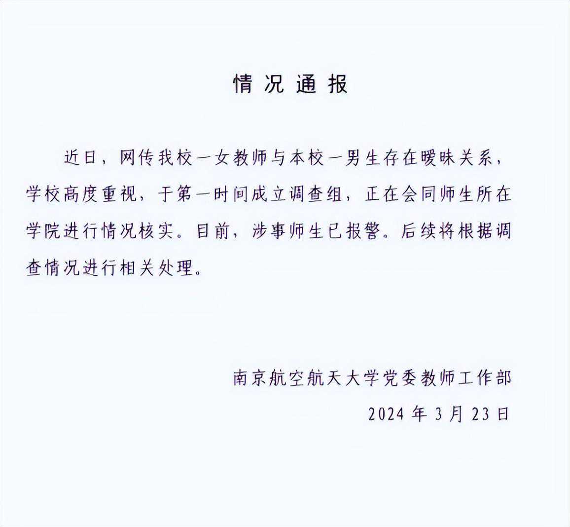 随着舆论愈演愈烈,校方很快就针对此事做出了回应,大概意思就是涉事的师生已经进行了报警处理,后续结果要根据相关证据再处理。
