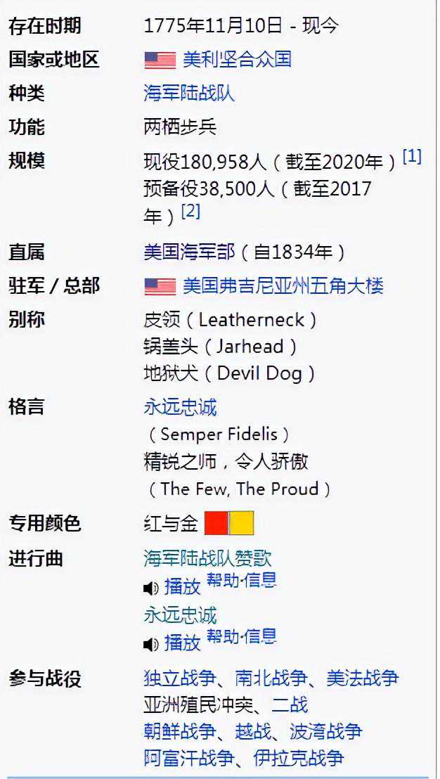 美国海军陆战队(英语:UnitedStatesMarineCorps,缩写为USMC),是美国军队中的陆战队及两栖作战部队,其主要职责是运用美国海军的舰队(含航空兵),快速抵达全球各危机发生地执行战斗任务。美国陆战队属于美国军队中的一个独立军种,与美国海军地位平行,同属美国国防部下属的美国海军部管辖,其英语军衔名称与陆军、空军相同。负责美国驻外使馆保安的使馆警卫队亦隶属于美国陆战队。