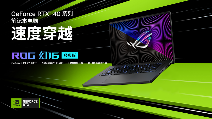 ROG幻16经典版采用GeForceRTX4070笔记本电脑GPU,全新AdaLovelace架构,配合先进的TSMC4N工艺,在能耗比方面的表现更加出色。此外,得益于DLSS3技术的加入,进一步提升了游戏体验,这也让ROG幻16经典版有着媲美专业游戏本的表现。
