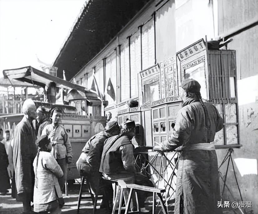 08这是晚清时期的街道,人们正好奇地望向镜头。从照片中的招牌可以看到街上有卖茶叶的,卖布的。