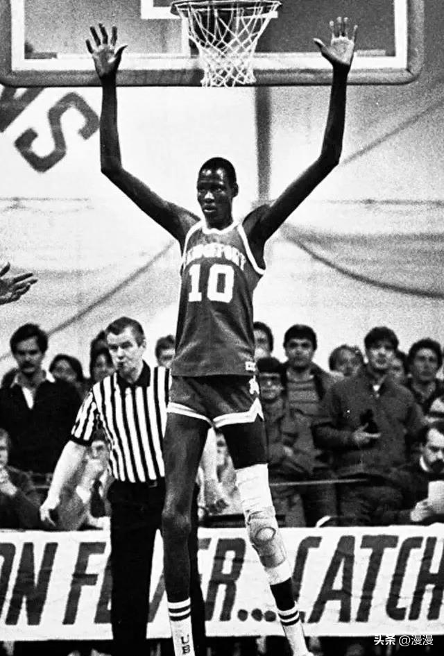 36马努特·波尔(ManuteBol),NBA最高的人,在20世纪80年代的大学里防守篮筐。