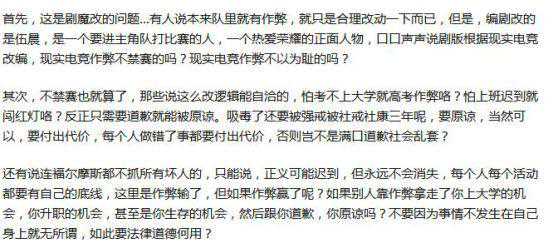 但是网友们的争议点并不仅于此,而是伍晨这个角色的人设崩了。想要推动剧情,加强戏剧矛盾,致敬当初难能可贵的比赛,这些都不是事,但为什么是让伍晨来当这个买通工作人员作弊的人?这并不符合原著。