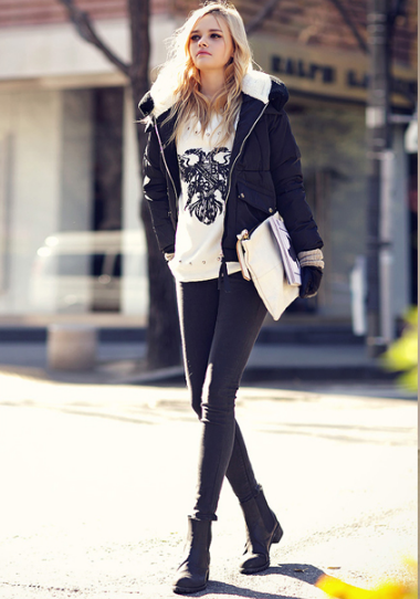 黑色紧身裤,穿出女性的干练女王范,同时也能修饰纤细的腿型曲线,让粗腿MM们穿得显瘦!