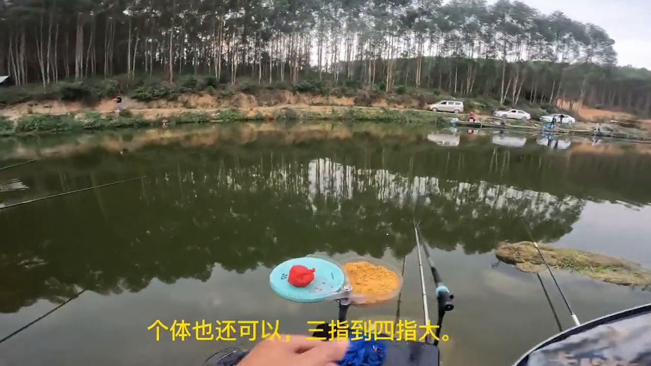 来了,我们的也来了,中鱼了。这鲫鱼那么小的吗?两指大?搞错了,原来是条小鲤鱼,以为是目标鱼。自己跑了,回去吧。又来了,再次中鱼,看下这条是不是目标鱼。看到了,这条是目标鱼,鲫鱼。来口还是蛮快的,这批鲫鱼。