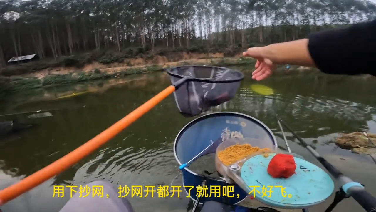 又来了,中鱼了,看下什么鱼。还是目标鱼鲫鱼,用下抄网,杆子软不好飞。还是和前面两条那么大小个体的鲫鱼,三指大这样。不过皮毛还是挺好的,干干净净,没什么伤。