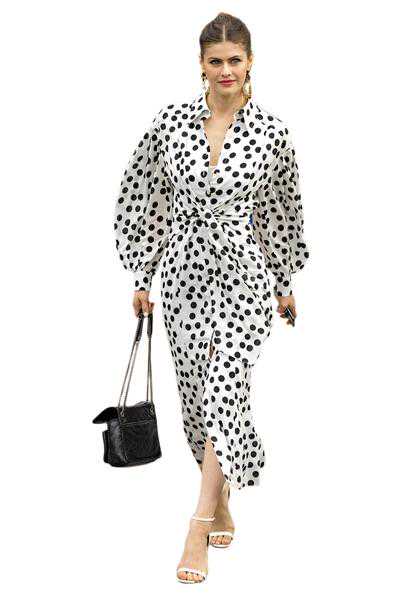 大V领、羊腿袖、扭结腰带,一条细节丰富的波点裙就足够时髦了。