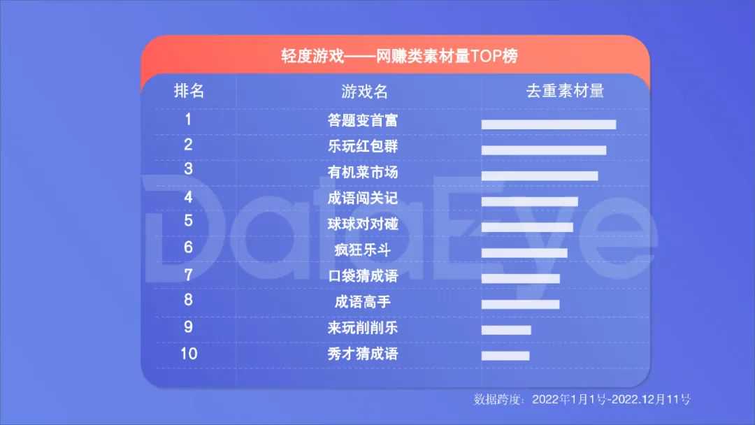 复盘了2022年国内移动游戏效果广告投放后,DataEye研究院发现: