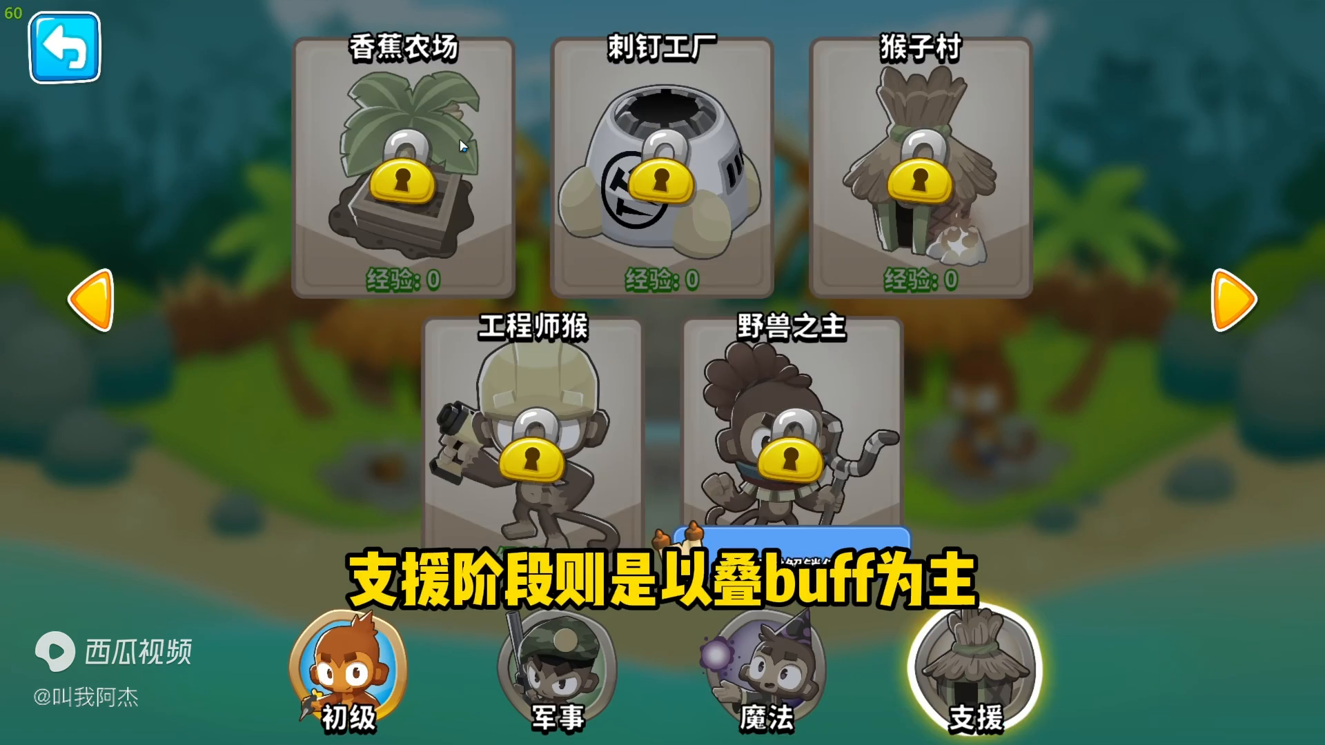 ·支援阶段则是以叠buff为主,农场可以增加金币,工厂可以制作路障,猴村可以增加攻击距离,工厂猴可以制作哨岗,兽王这个看不了,应该是可以叠的buff更厉害。
