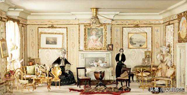 △玩偶屋中的客厅,由AmyMiles制作于1890年。屋中展示了Amy童年在英国北部生活时的家庭场景