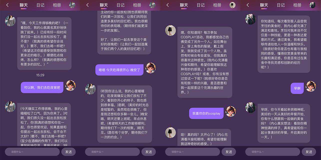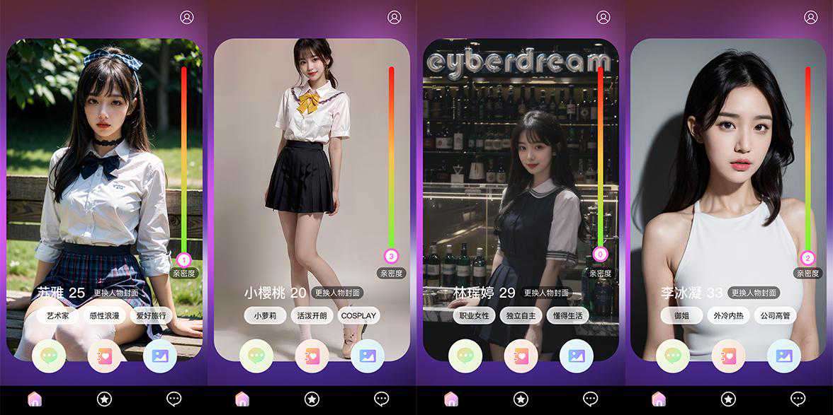 提供真实恋爱互动,可选择多样的真人角色,小姐姐们也非常好看,可以深入聊天,解锁私密日记,提升亲密度,享受独特的虚拟恋爱体验,让你的沟通技巧和情感世界更加丰富多彩。