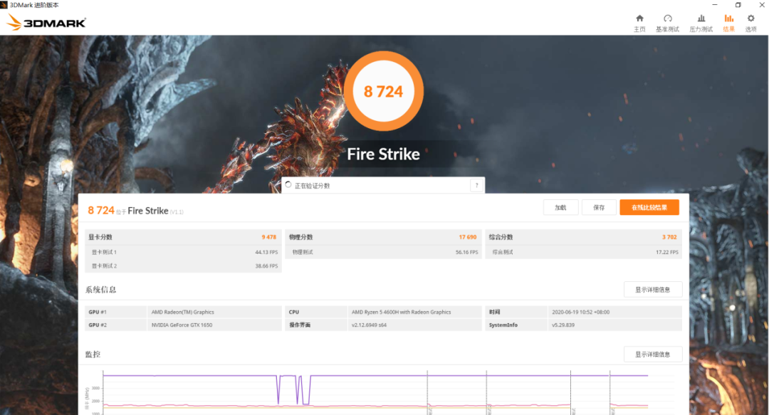 为了更清楚了解GTX1650表现,我们用3DMARK软件进行测试。