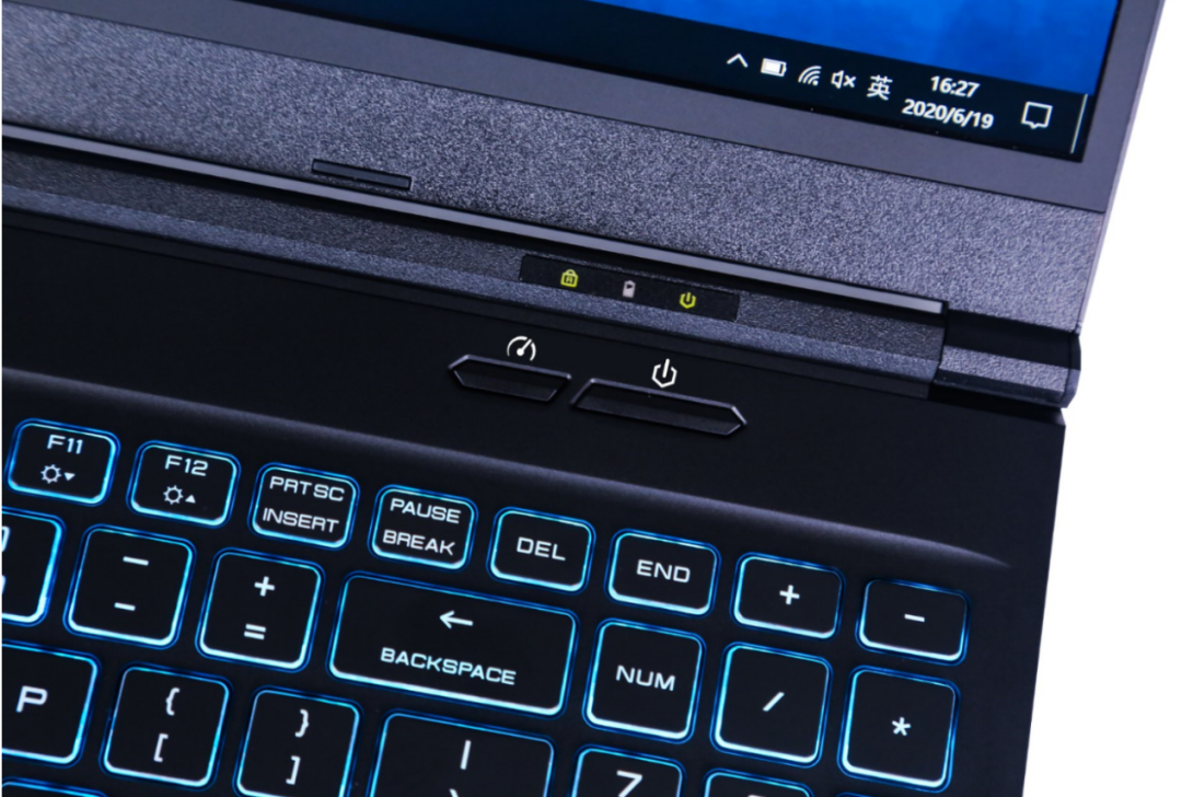 C面标配了传统的全尺寸键盘,辅以单区多彩背光,支持小键盘输入和背光亮度调节,打开火影自带的控制中心软件,可以调节背光颜色,有单彩、多彩以及自定义三种模式供你选择。右上角是一键强冷按键和电源键,双击触摸板左上角指示灯可以关闭/打开触摸板功能,这种比快捷键更方便,非常易操作。