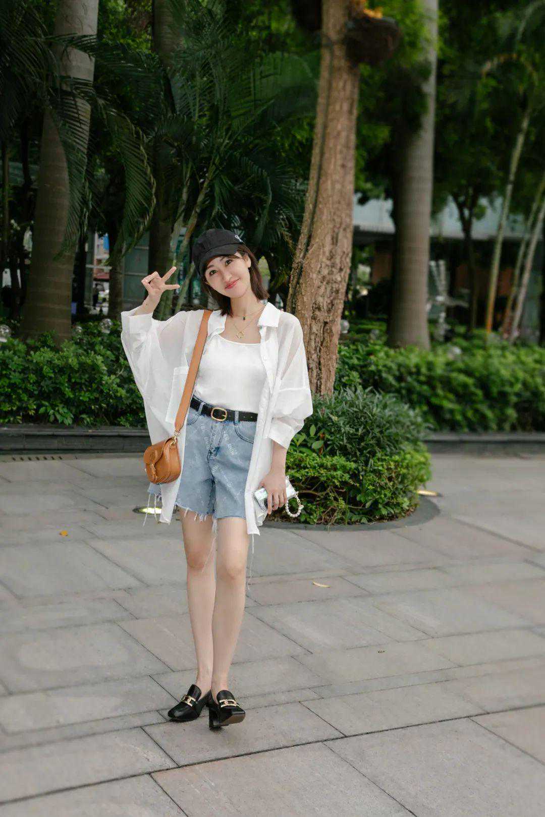 短裤我喜欢选宽裤管、长度在膝盖上方几厘米的,舒服的同时又能遮肉,还很显腿细。▼