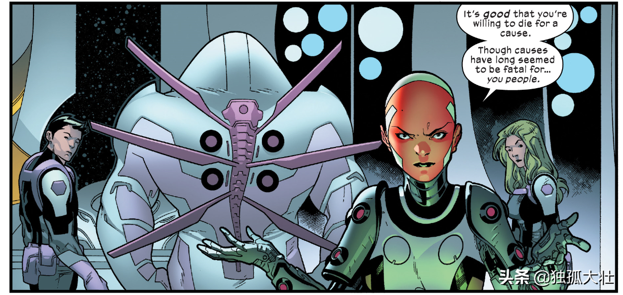 所以这就是编剧乔纳森·希克曼的实力,他在两期漫画之内完成了对于X战警的体系的重建和背景设定,让整个变种人的故事变成了一部堪比《星球大战》的战争史诗,彻底改变了X战警故事的颓废情况,从目前的剧情来看,这重启非常的成功。