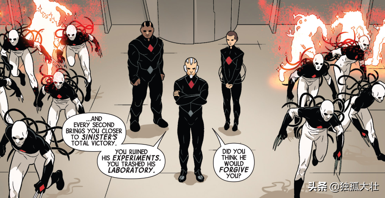实际上在战争达到最激烈的时候,变种人并不是机械霸主的对手,所以他们启用了一个有些残酷的计划,就像战锤中那些疯狂的士兵一样,克拉科批准了凶兆先生在火星的培育计划,他是变种人中最强势的基因科学家,他甚至收集了世界上所有人的基因样本,而凶兆先生也开始为这场战争制造那些可怕的战士。