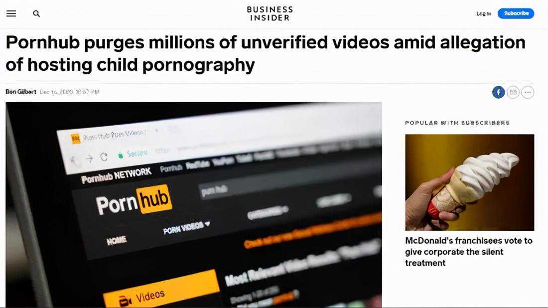 12月4日,发表了一篇名为《被Pornhub毁掉的孩子》的文章。文章作者是获得过两次普利策奖的知名记者——纪思道。