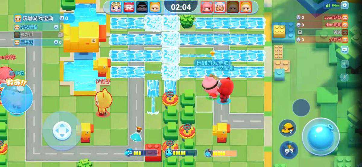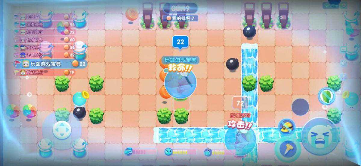 游戏中的角色一共有三项属性,分别是水泡水量(安置泡泡数)、水泡威力(泡泡的伤害范围,原本都是一格)、移动速度,同时每个角色还有着不同的技能。