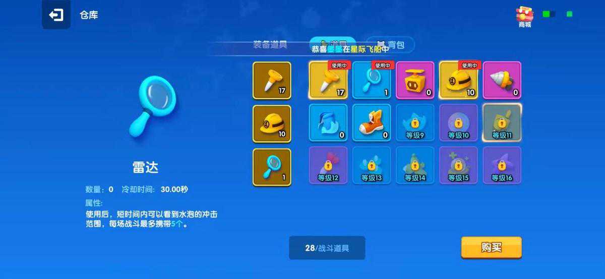 在比赛中玩家可以携带3个道具,辅助、保护、攻击等效果各有不同,这些道具玩家可以通过对局的金币或是奖励水晶兑换。
