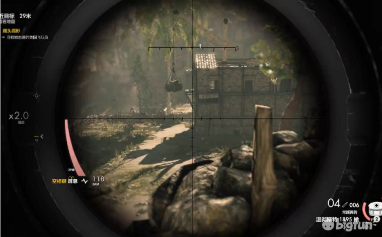 潜入德军的巨型基地,找到合适的狙击点,开镜,标记目标,调整瞄准距离,反拉准线平衡风力,镜头稍微抬高预判子弹下坠,屏息,扣下扳机。