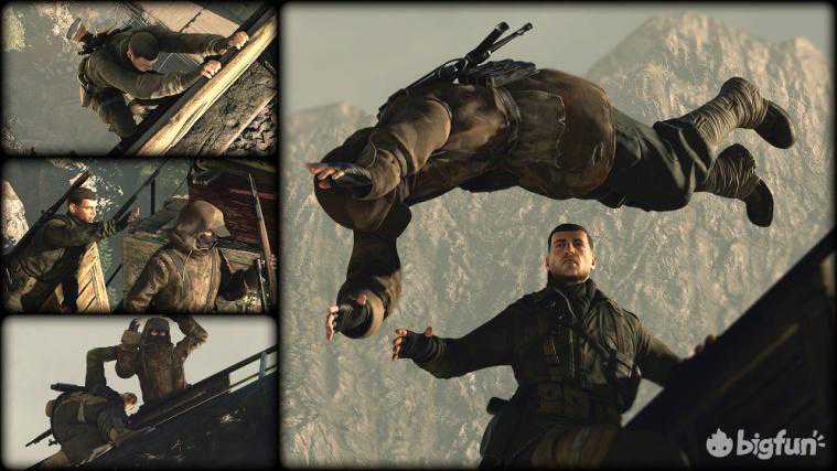狙击精英一直以来以狙击的打击感和击杀特写在这类游戏之中声名大噪,在狙击精英4里,游戏对打击感进一步优化,子弹击中的效果以及子弹弹道,物理特效在本作都有细致的改进,包括击中后敌人倒地动作进一步物理化,不同的角度不同的打击感,玩家可以在击杀镜头中明显的看到子弹对敌人的推力,对于《杀手:狙击挑战》那种隐匿狙击,利用物理效果在击杀的同时利用推力把尸体推入草丛,推下悬崖等效果更容易实现。