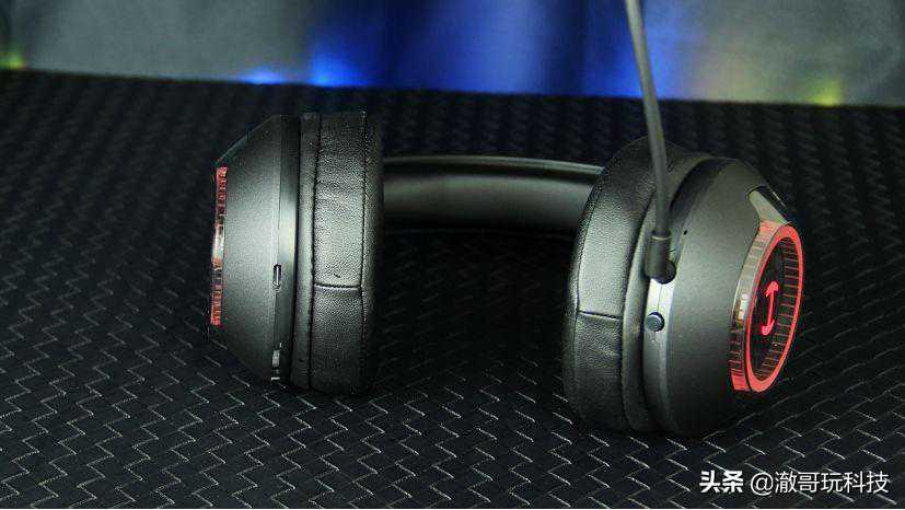 漫步者HECATEG4S雷霆版整体机身采用了纯黑的配色方案,加上耳罩透明外壳内的纹理装饰,气质沉稳低调且美感十足。不过只要进入开机状态,耳罩上透明的灯环和HLOGO就会呈现出鲜艳的红色,此时耳机配色变成了游戏产品中经典的红黑配色,整体外观立马变得富有“战斗”气息,T让人激情澎湃。