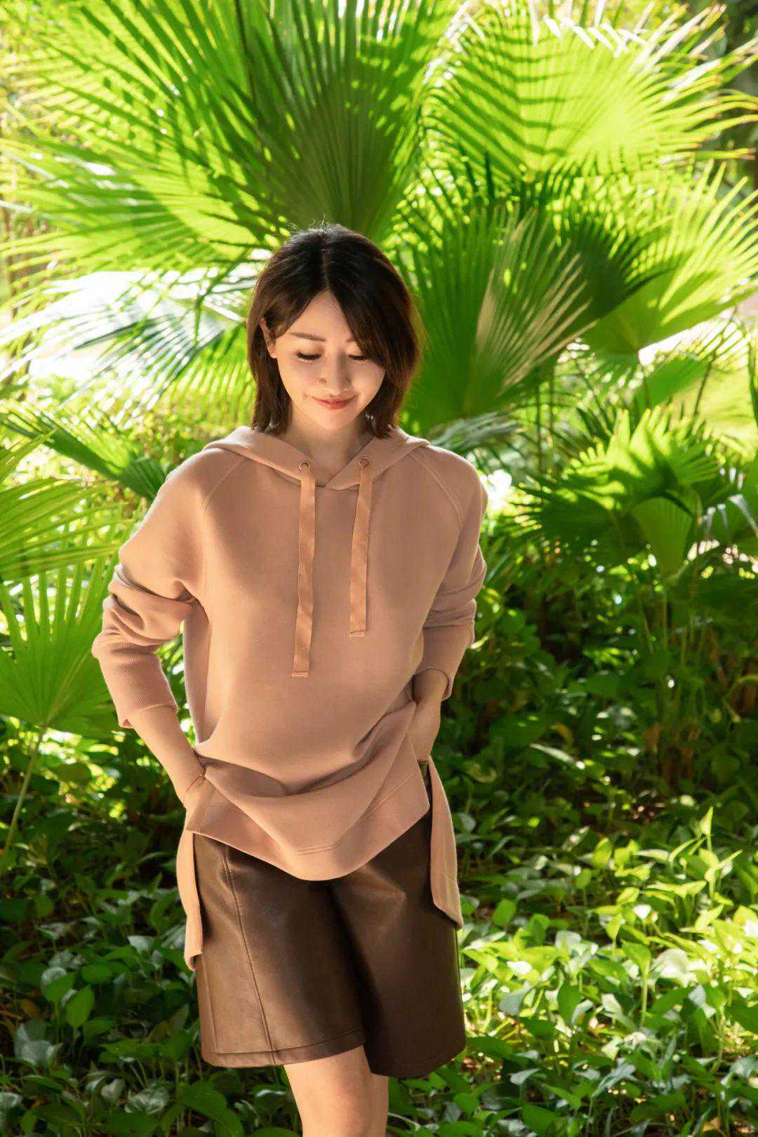 随手抓了件连帽卫衣,搭配皮短裤就出门了,很自在。▼