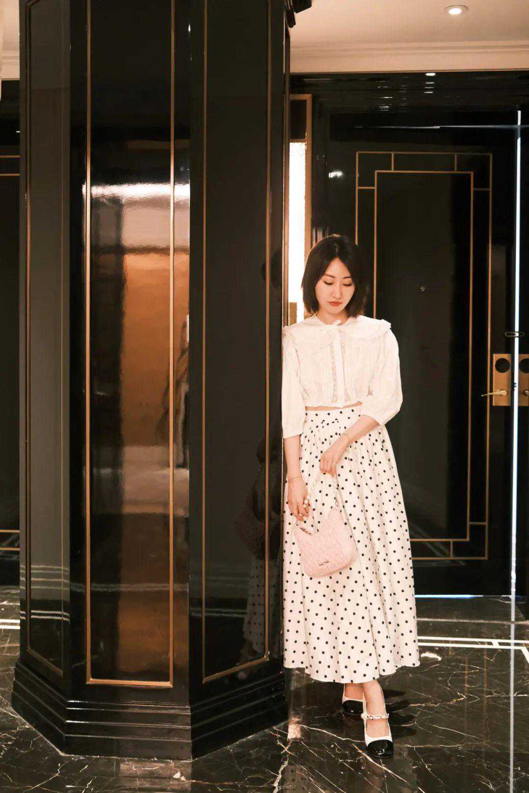 LOOK12:娃娃领衬衫+波点半裙+玛丽珍鞋