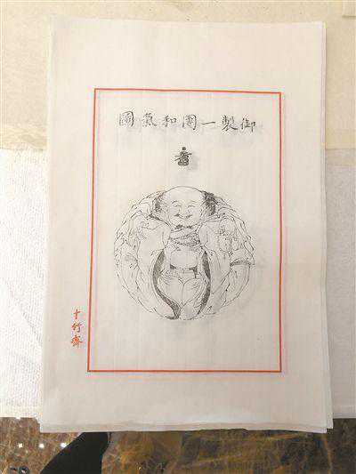记者向他介绍了这个图案的寓意,他很高兴,仔细把作品收了起来。