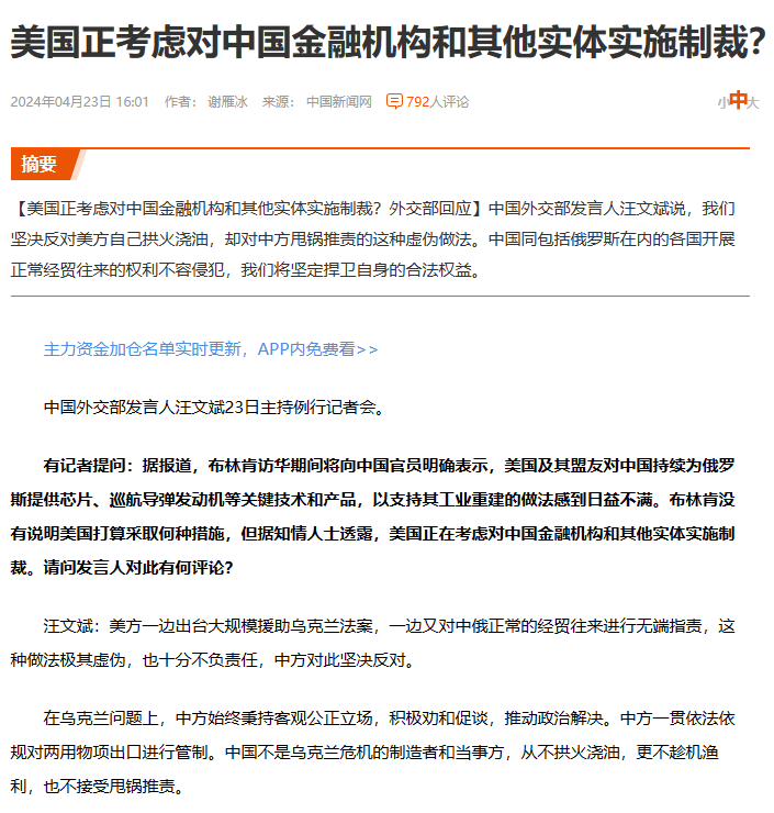 根据媒体的报道,美方为了阻止中方为俄罗斯进行支持。