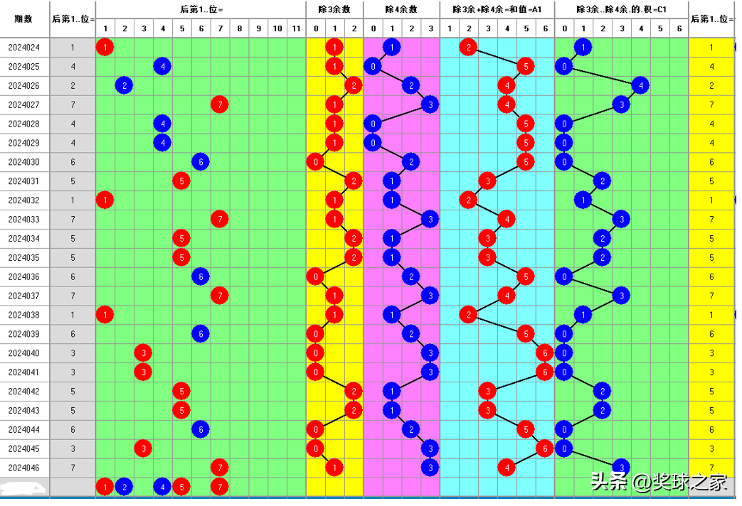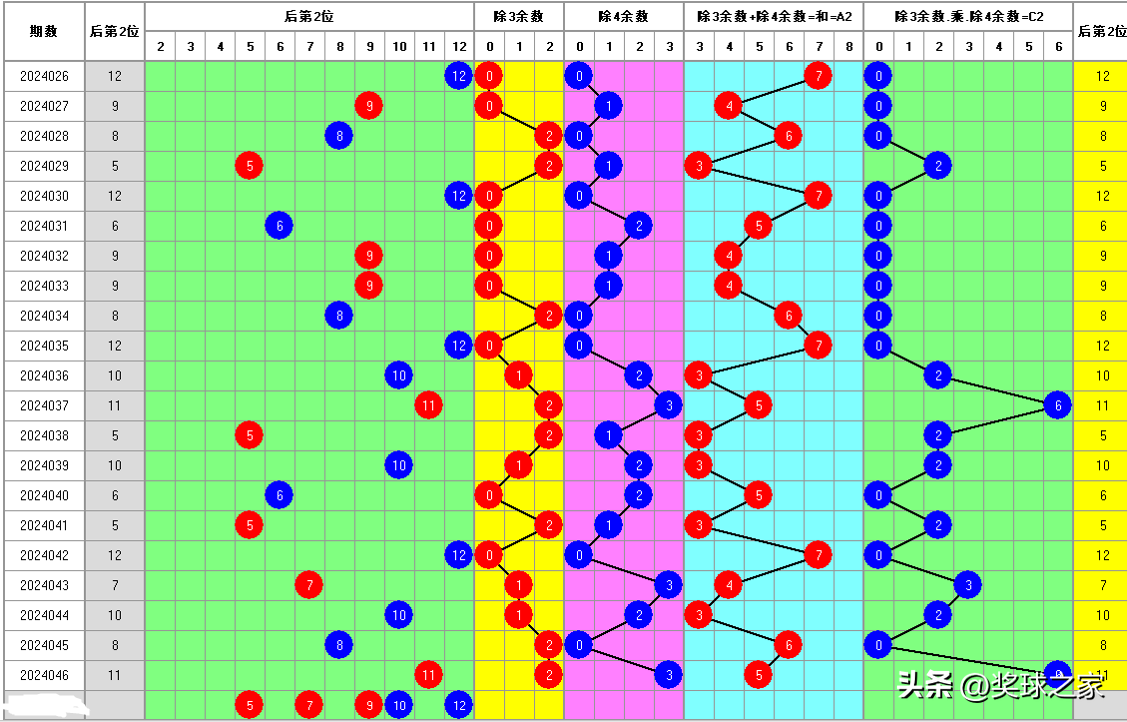 一、分析大乐透后区,除以3与除以4的余数值的和、积