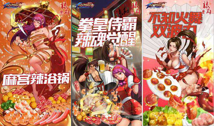 于此同时,拳皇与“潮人火锅”辣府的合作也在全国展开,更有“拳皇辣魂觉醒”限定版主题门店一同上线,火锅从店内软装摆设、菜单易耗品、服务员欢迎词都将全面“拳皇化”。热辣香艳的限定版菜式:不知火舞双波丸、冰镇霸王杯以及麻宫辣欲锅,完美诠释拳皇的燃情。不仅在三次元的主题店能尝到,在游戏内更内为格斗家补充先手战力。