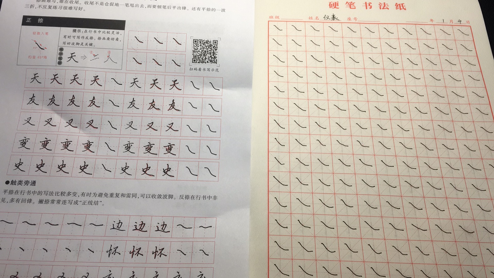 练字的时候比较用力,手有点酸,但学会写字的笔画顺序后,感觉很流畅很舒服,只是还需要更专注的练字,后续慢慢来。