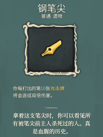 金刚杵是每场战斗都可以增加力量,钢笔尖则是配合第十张牌打出爆炸输出!