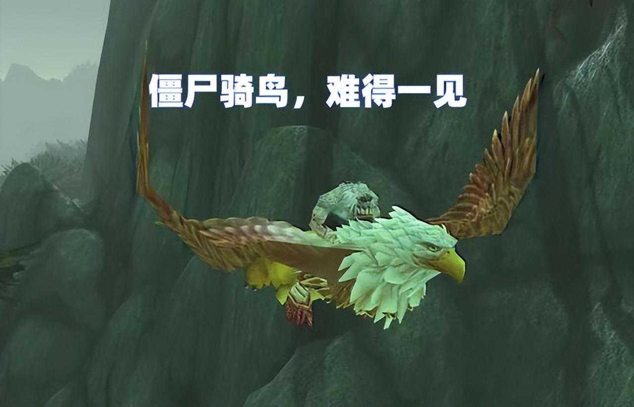 要是玩家在飞行途中被感染了怎么办?就会出现上图中的奇妙画面,一只面貌狰狞的天灾僵尸骑着一只威风凛凛的狮鹫,话说狮鹫不是应该察觉到背上的异常,把僵尸直接扔下去吗?