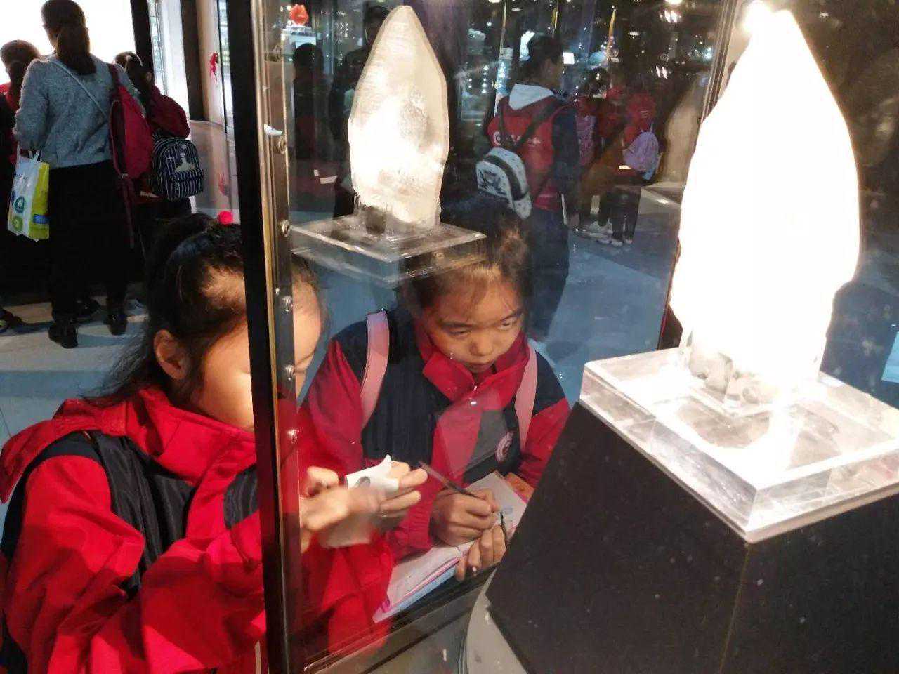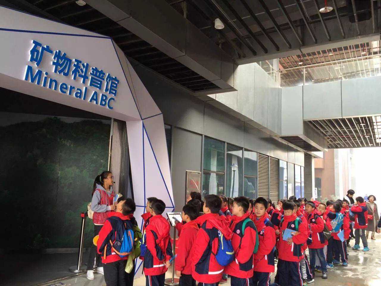 当天早上9点30分,武汉路小学4年级的250名小学生在矿博园门口集结完备,手捧新汇编的地矿科普教材的孩子们难掩兴奋,红扑扑的小脸蛋上眸光闪耀,他们知道在矿博园及地质博物馆内即将找到书本上描述的精美矿晶,神奇的地矿探索之旅就在眼前。