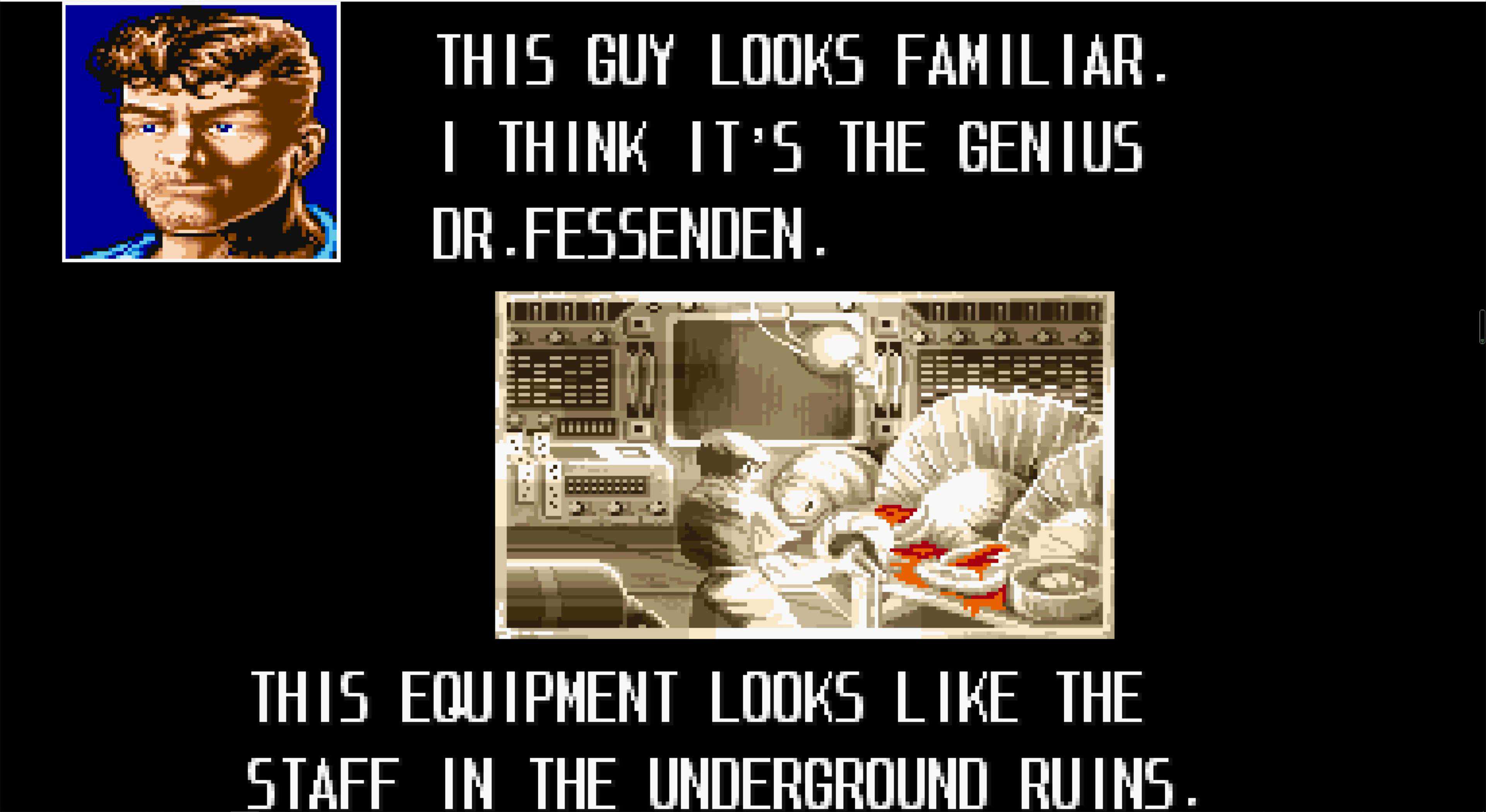 终于见到了费森登博士,他说他一直在等着我们,刚好来得及开始我们的新生命(这句话看不太懂,我怀疑原文对白有问题,但我英文水平不行,不敢乱讲)。