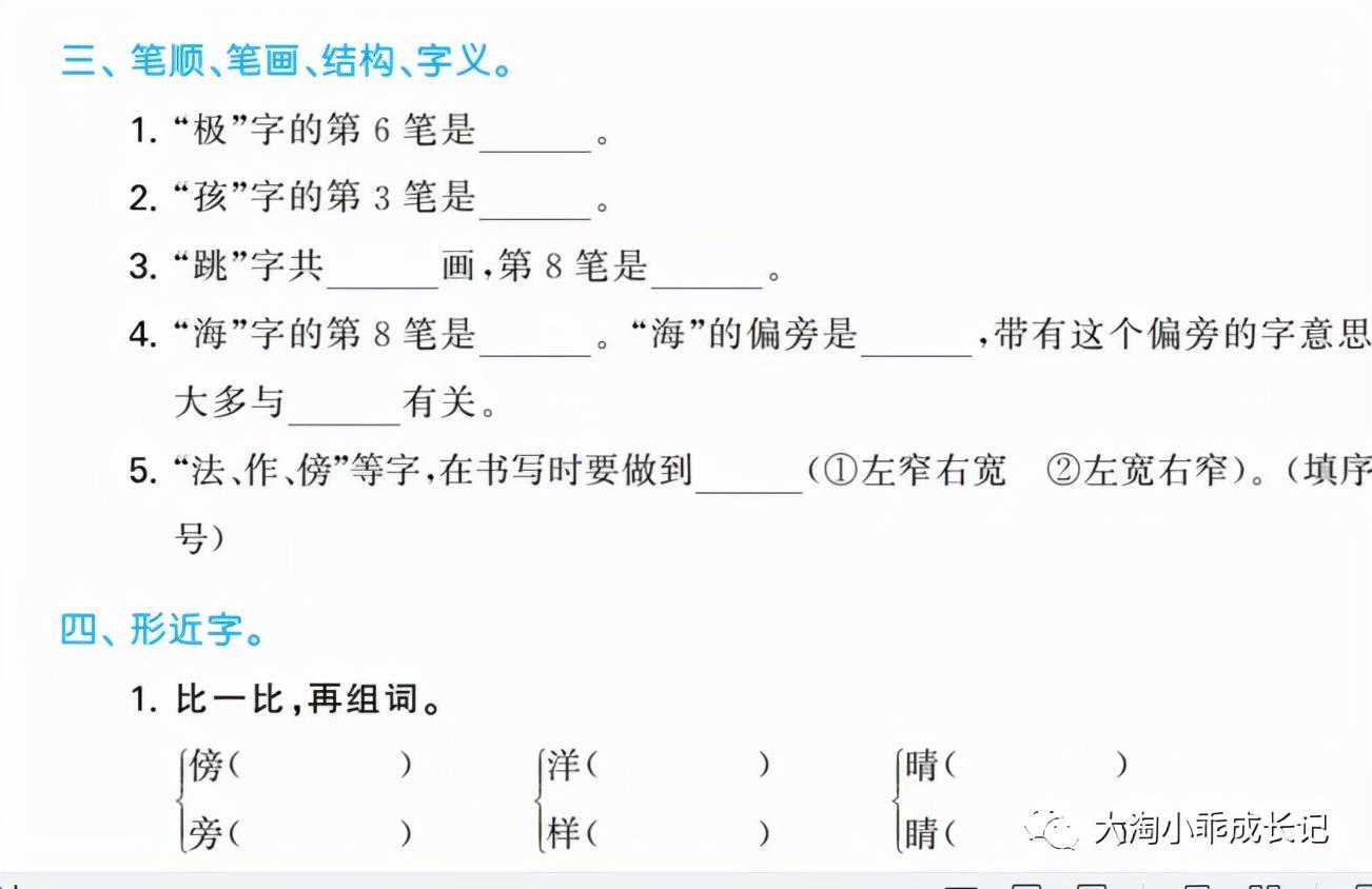 淘刚上一年级的时候,我以为基础知识只是会写生字就ok,后来发现差得远了。