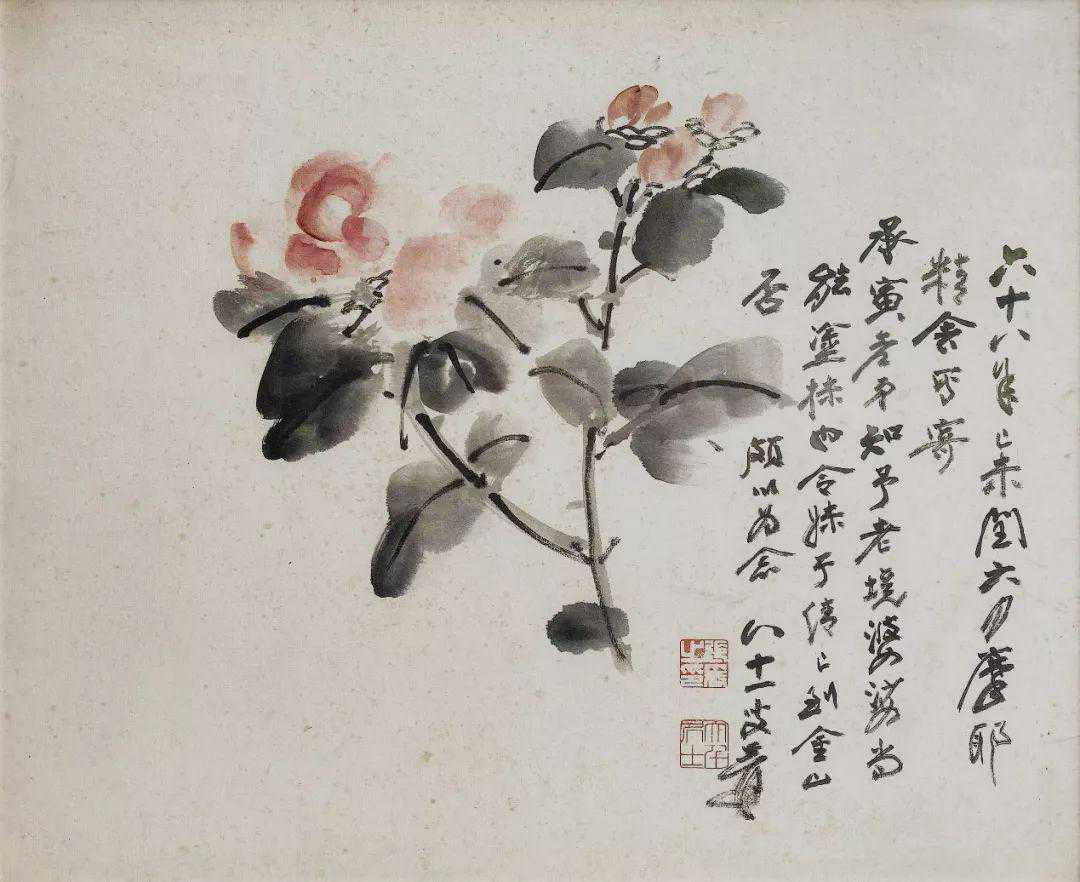 款识:六十八年己未闰六月摩耶精舍写寄,承寅老弟知予老境婆娑,尚能涂抹也。令妹子清已到金山否,颇以为念,八十一叟爰。