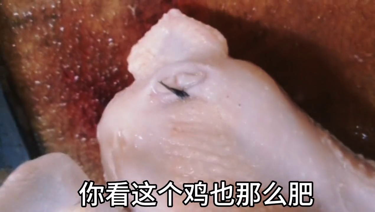正所谓鸡也肥,鸭也肥了,你看这个鸡也那么肥,现在冬天的鸡鸭都是比较肥美,吃饱又睡。天气冷,杀干净了,这个青头鸭算不算肥?有六斤重,你们喜欢吃肥的还是喜欢吃瘦的?个人喜欢了,这个还算可以,斩好了都挺肥的。这个屁股、脖子皮都有半斤了,还有一些油,还是比较肥的。就这样了。