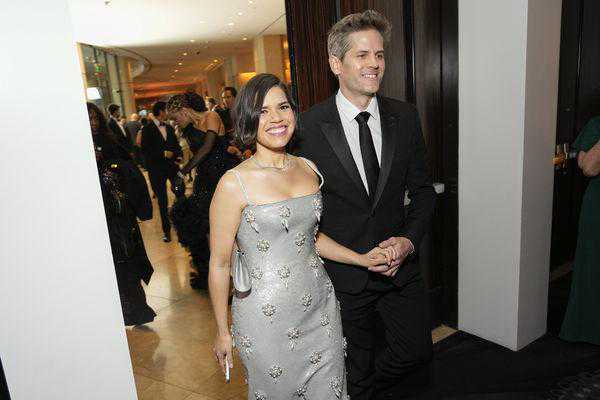 片中饰演葛洛莉的艾美莉卡弗瑞娜(AmericaFerrera)虽然没有选穿粉色服装,但一袭银色长裙相当有气质,并幸福的挽着老公雷恩皮尔斯威廉斯(RyanPiersWilliams)的手现身。男主角雷恩葛斯林虽然走安全牌以黑色西装亮相,但微微露出胸肌,帅度逼人。
